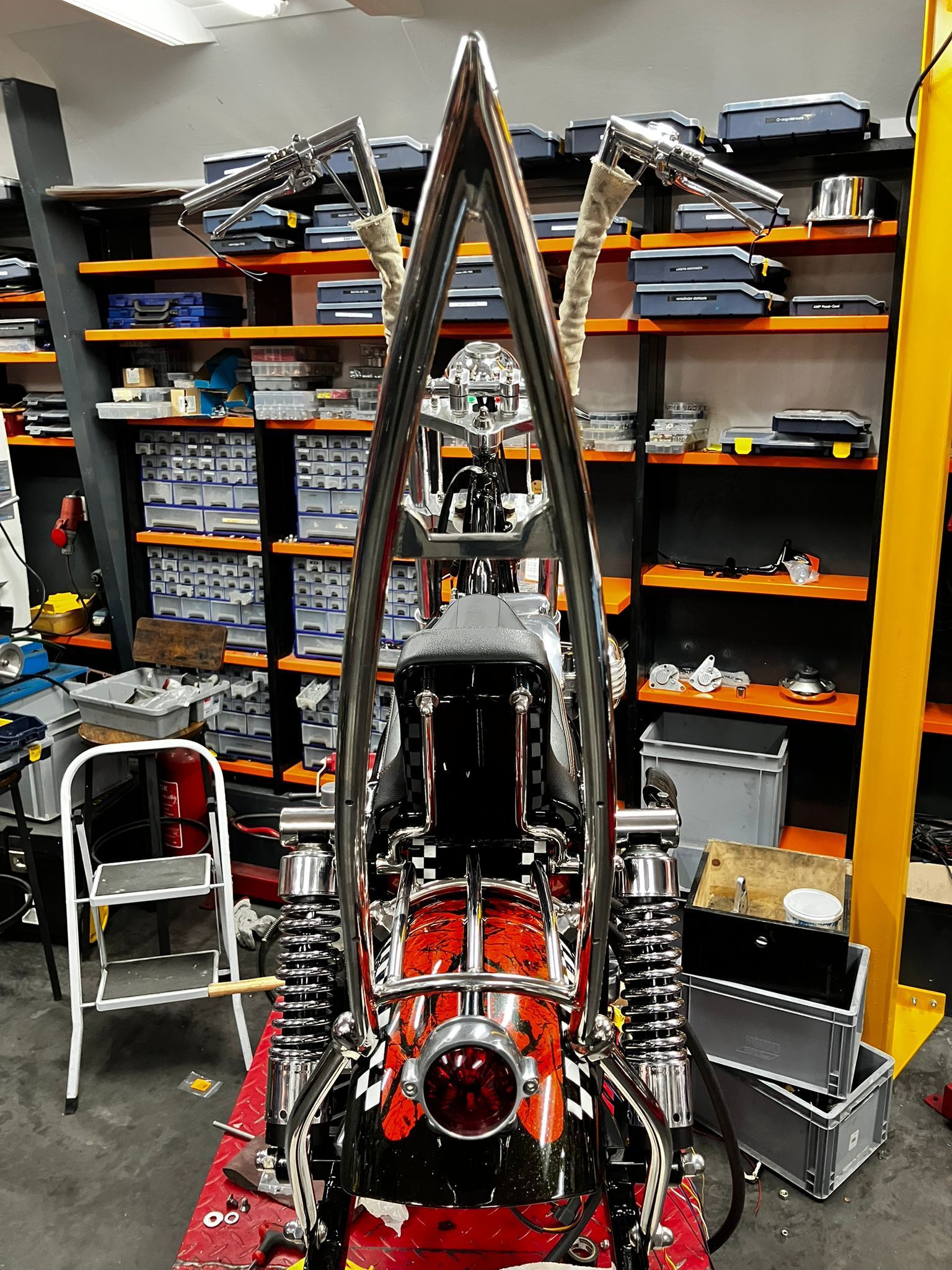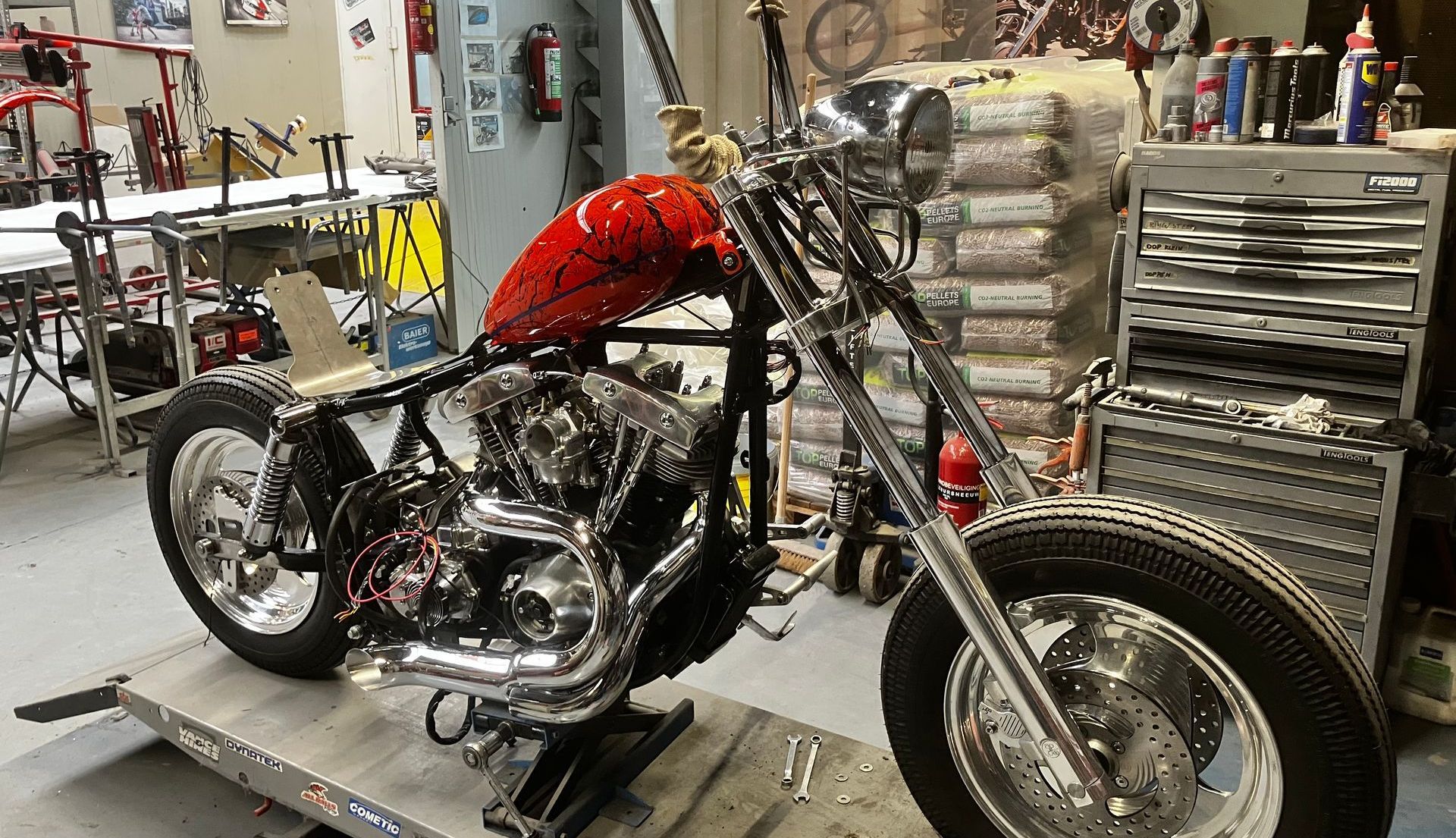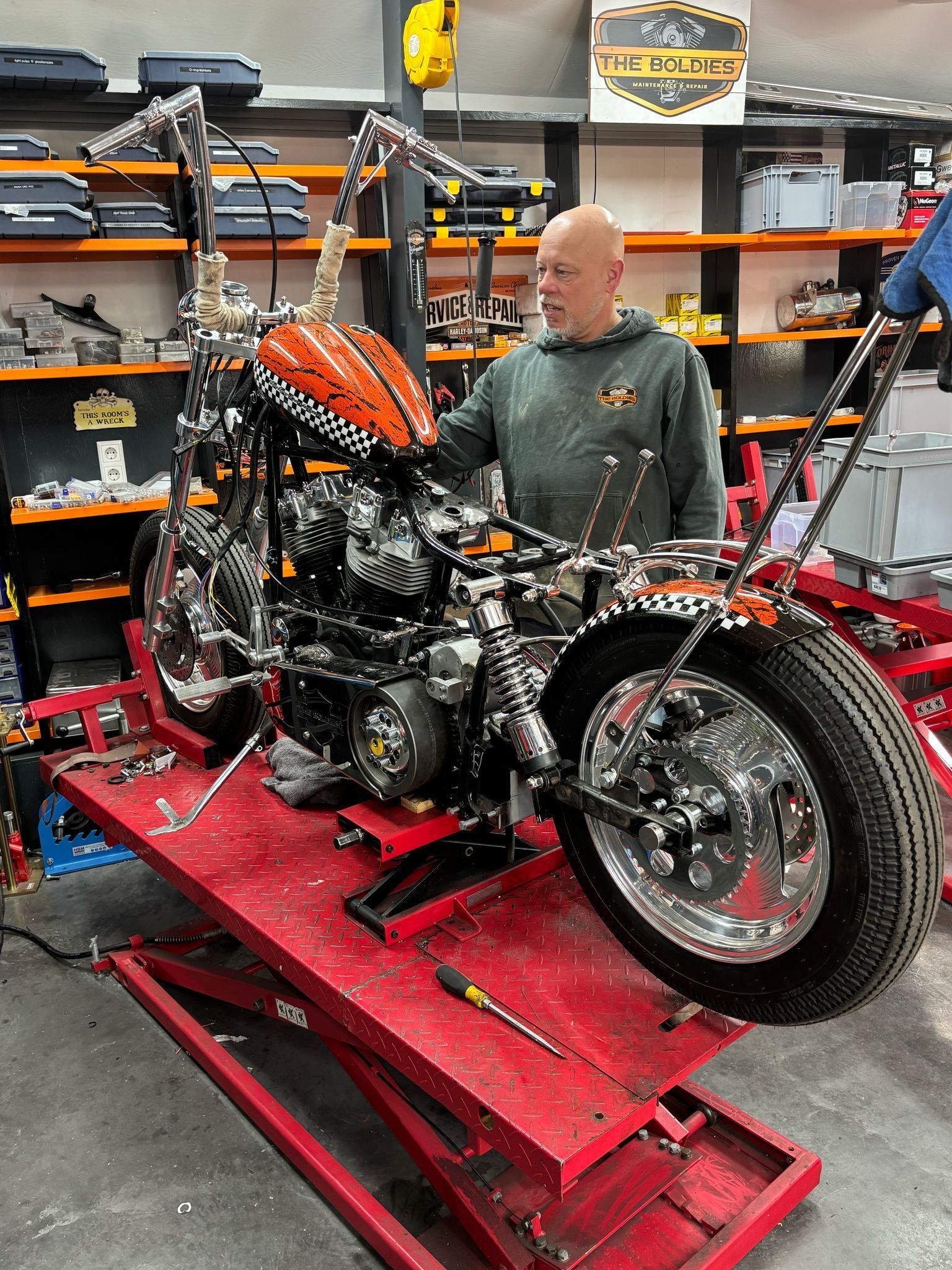 Elk vrij uurtje zijn we gaan sleutelen. Alles is custom en eigen. Nu is de shovel bijna klaar, misschien wel de vetste van Nederland.