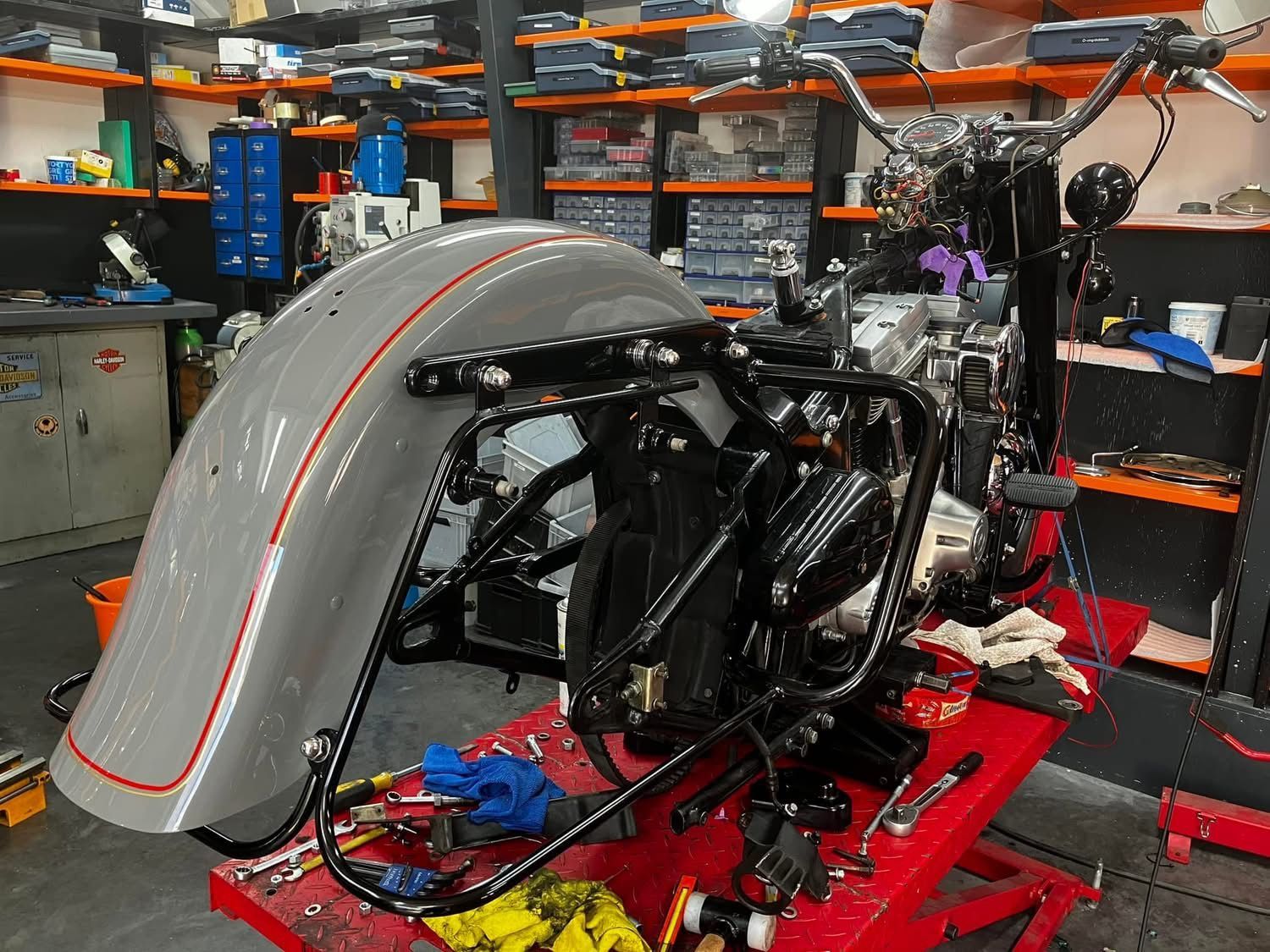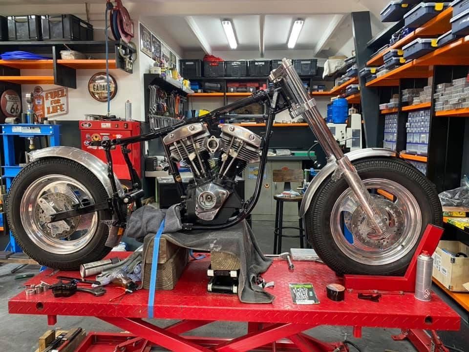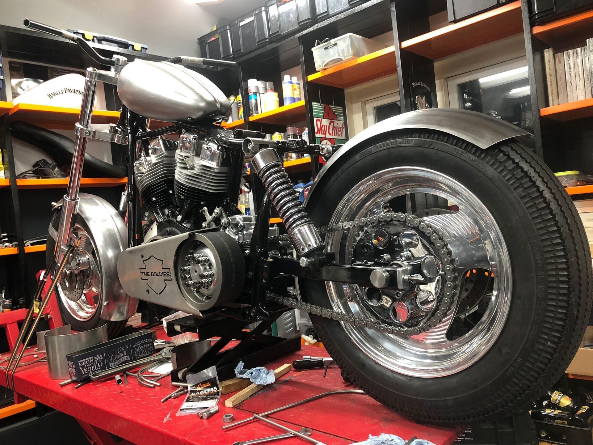 Elk vrij uurtje zijn we gaan sleutelen. Alles is custom en eigen. Nu is de shovel bijna klaar, misschien wel de vetste van Nederland.